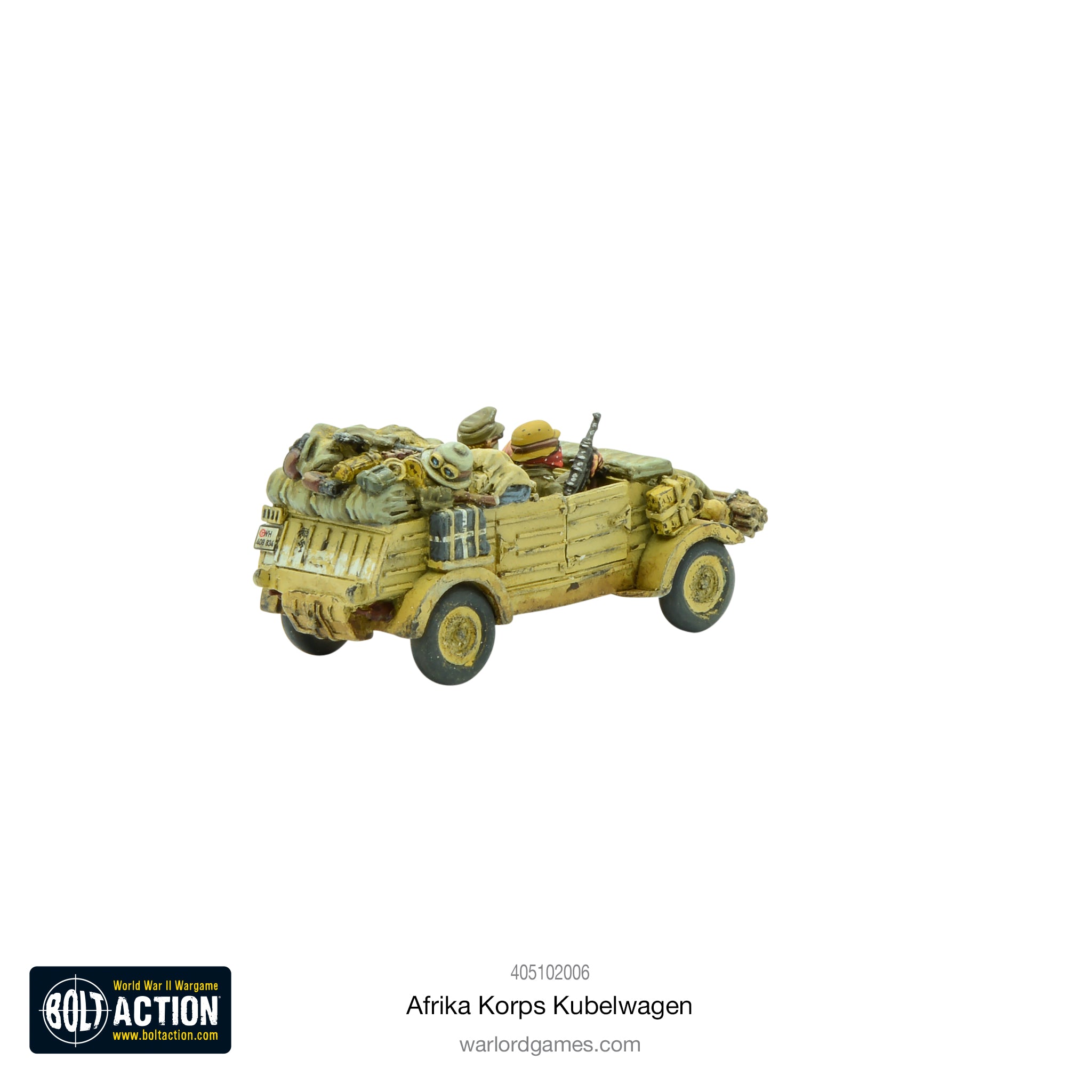 This Afrika Korps Kubelwagen has the larger 'balloon' tyres used in the open stretches of the deserts to avoid bogging down in the sand and is packed with stowage and gear to help survive in the harshest of environments.