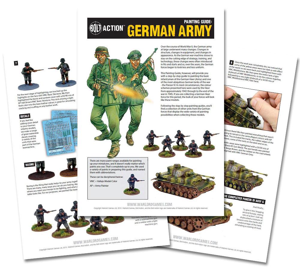 This 7 page Painting Guide will provide you with a step-by-step guide to painting the basic infantryman of the German Heer (Army) and one of the most ubiquitous German tanks of the war - the Panzer IV. In most circumstances, the colour schemes presented here were used by the Heer from approximately 1942 through to the end of the war in 1945. If you are collecting a German Heer force for this period, the bulk of your forces will look like these models.