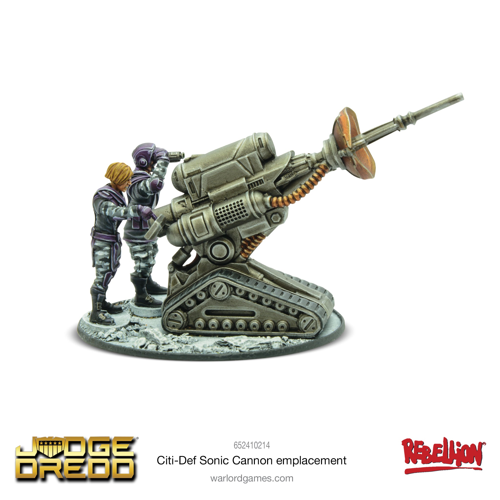 Only mounted on vehicles and semi-mobile emplacements, the sonic cannon is a massive weapon intended to incapacitate large crowds through ultrasonic waves causing nausea, shortness of breath, or even more unpleasant results. Found in the armouries of both the Justice Department and the Citi-Def, its only real purpose is to be used against the citizens of Mega-City One.
