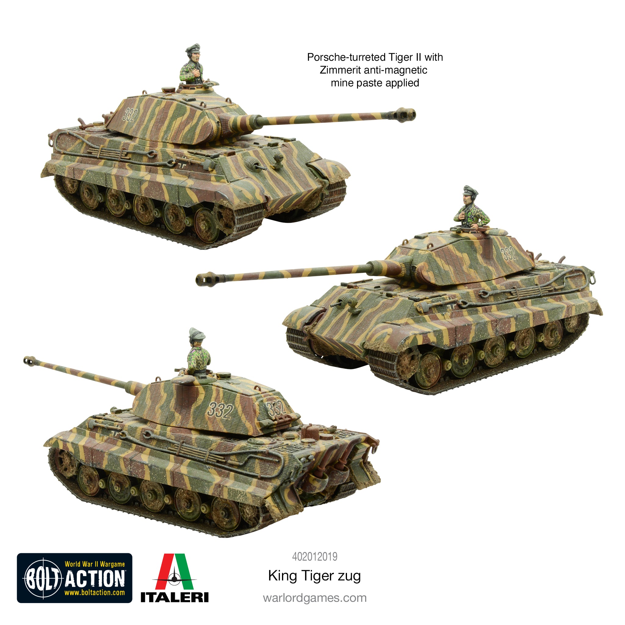 Here's the King Tiger Bolt Action profile, within an average game of Tank War consisting of 2500 - 3000 points or more 5 is the perfect number:
