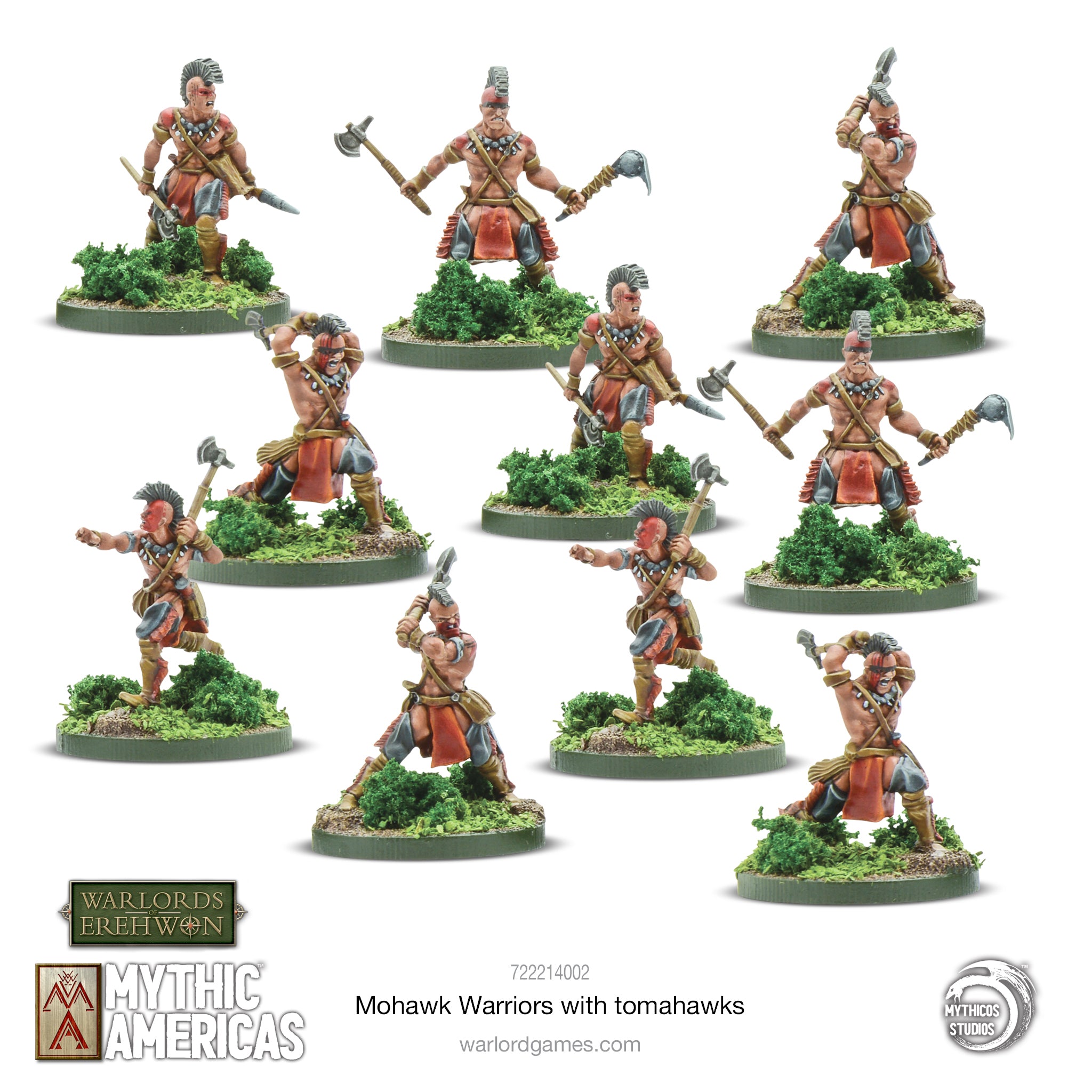 Mohawk Warriors \'mō-hȯk\ – Mohawk Warriors are the core melee unit in the Tribal Nations warband. They have a better than average agility, Woodsmen and the option to take tomahawks; making them a stand out ambush unit. These warriors can move through terrain with ease to attack their targets but their lack of armor makes them vulnerable to enemy counterattacks.
