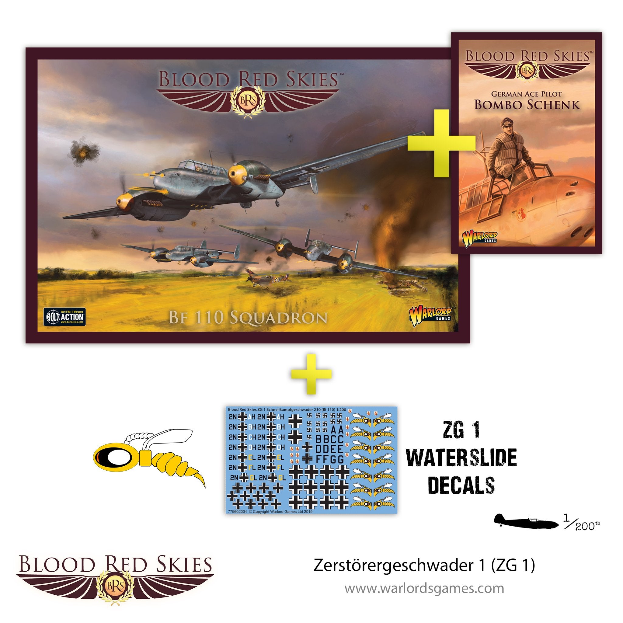 Featuring the German ACE Bombo Schenk and FREE decals for Zerstörergeschwader 1 (ZG 1), a Luftwaffe Bf110 heavy Fighter wing.